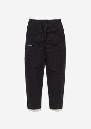 生地目の詰まった高密度コットンウエポンを使用したSFワイドトラウザーズ。ツータックの腰回りから裾口へワイドなままのストレートシルエット、斜め間口のサイドポケット及び片玉縁のヒップポケットを配し、背面にCROSS PADDLEの織りネーム付き。腰帯のスレキには「SF | Wide」のプリント。ブラック、チャコールの2色展開。