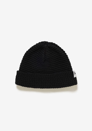 ローゲージのコットン/ポリエステル混紡糸を使用したCOOL MAX仕様のニットビーニー。カフにCACHALOTの刺繍ロゴ。ブルー、ネイビー、ピンクの3色展開。