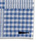 ギンガムチェックとストライプ柄を組み合わせたパイル生地のハンドタオル。CACHALOTの刺繍ロゴとCETUSのピスネーム付き。高級タオルの産地として知られる今治メイド。W250/H250mm