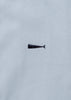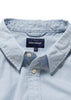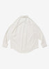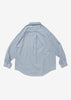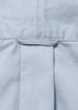 中厚地のコットンカツラギを使用し、ブルーとオフホワイトを展開するレギュラーカラーシャツ。ウォッシュ加工によるナチュラルな風合いと、ループ付きセンターボックスプリーツ、ガントレットボタン仕様。前身頃の左胸にCACHALOTの刺繍ロゴ入り。